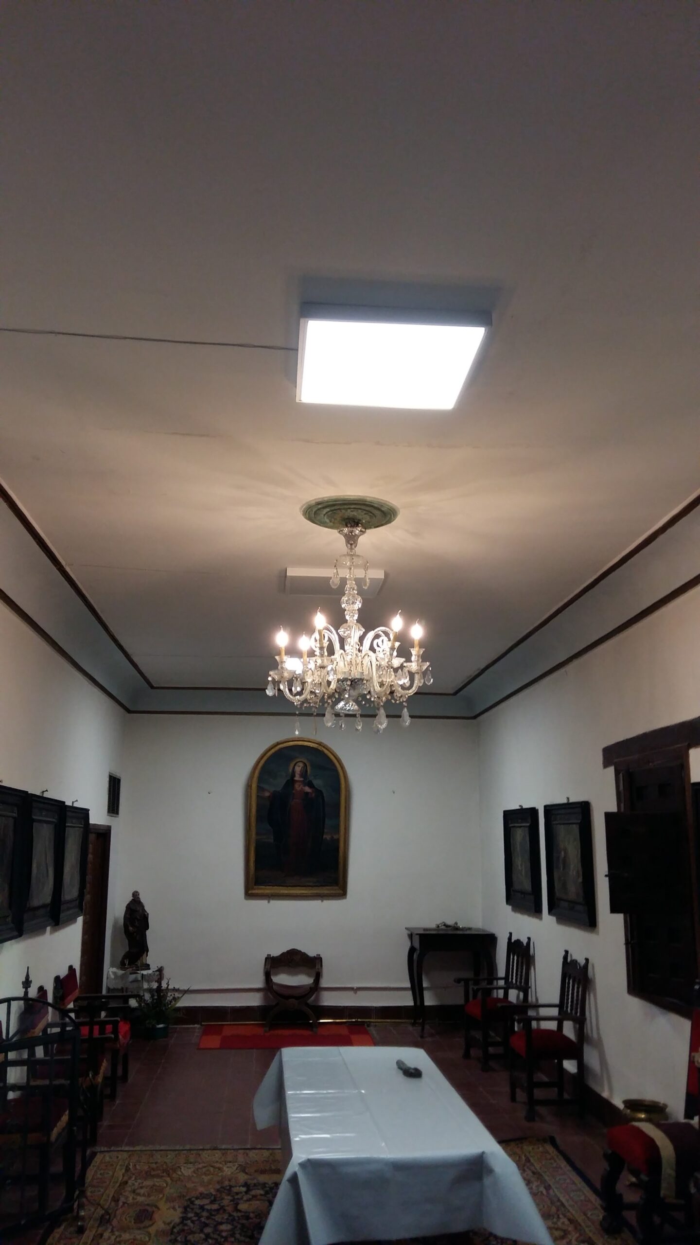 Instalación nueva de iluminación y lampadario en Madrid, logrando una atmósfera cálida y eficiente, que resalta la belleza arquitectónica y reduce el consumo energético.