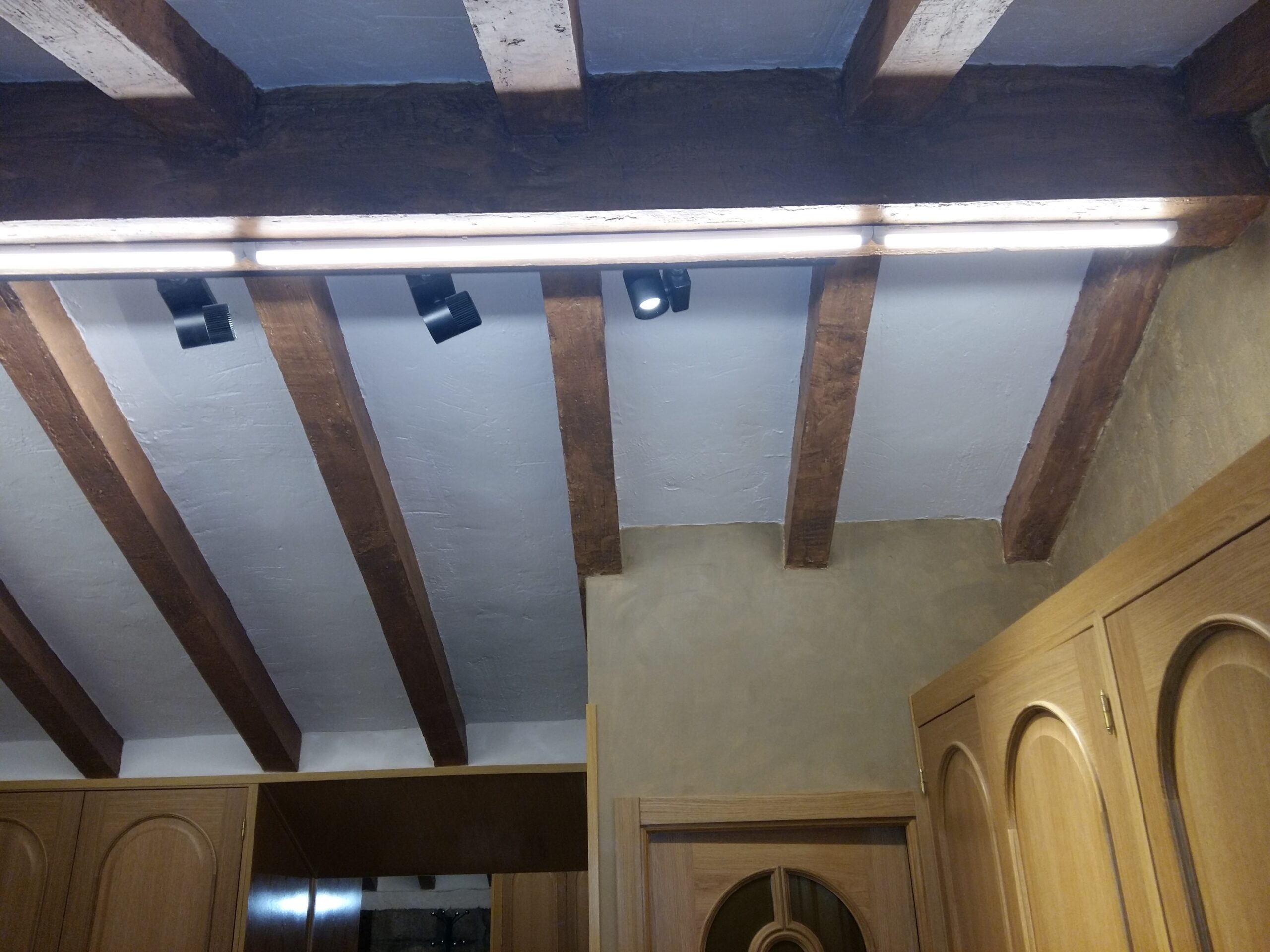Instalación nueva de iluminacion en Madrid, logrando una atmósfera cálida y eficiente, que resalta la belleza arquitectónica y reduce el consumo energético.